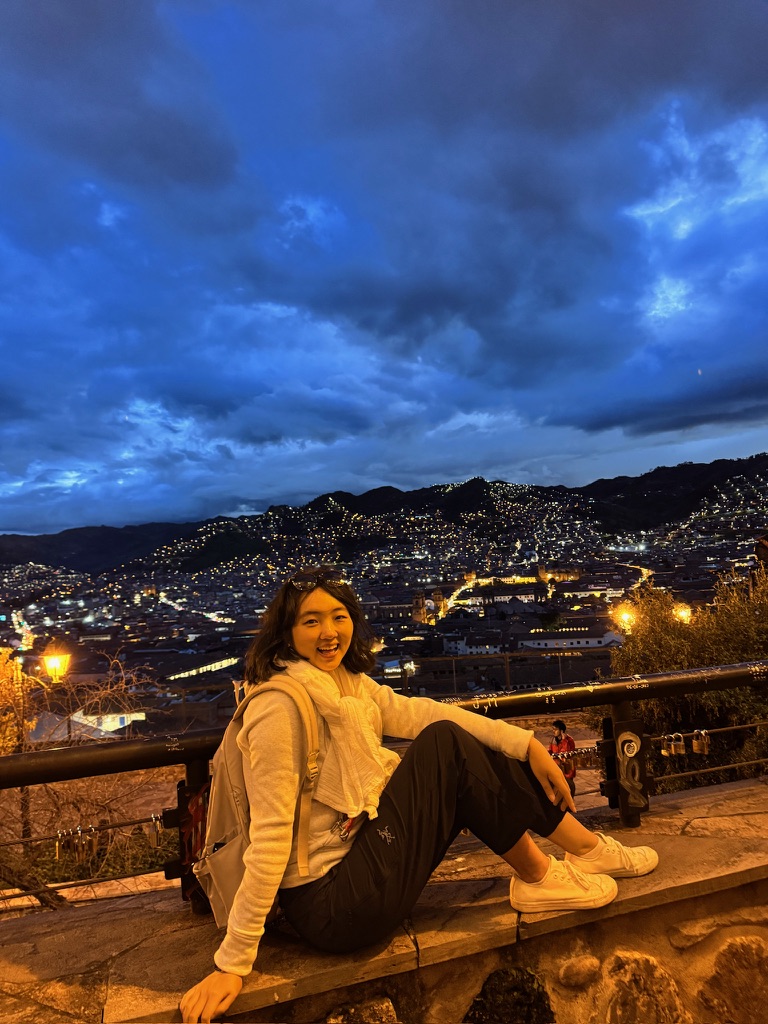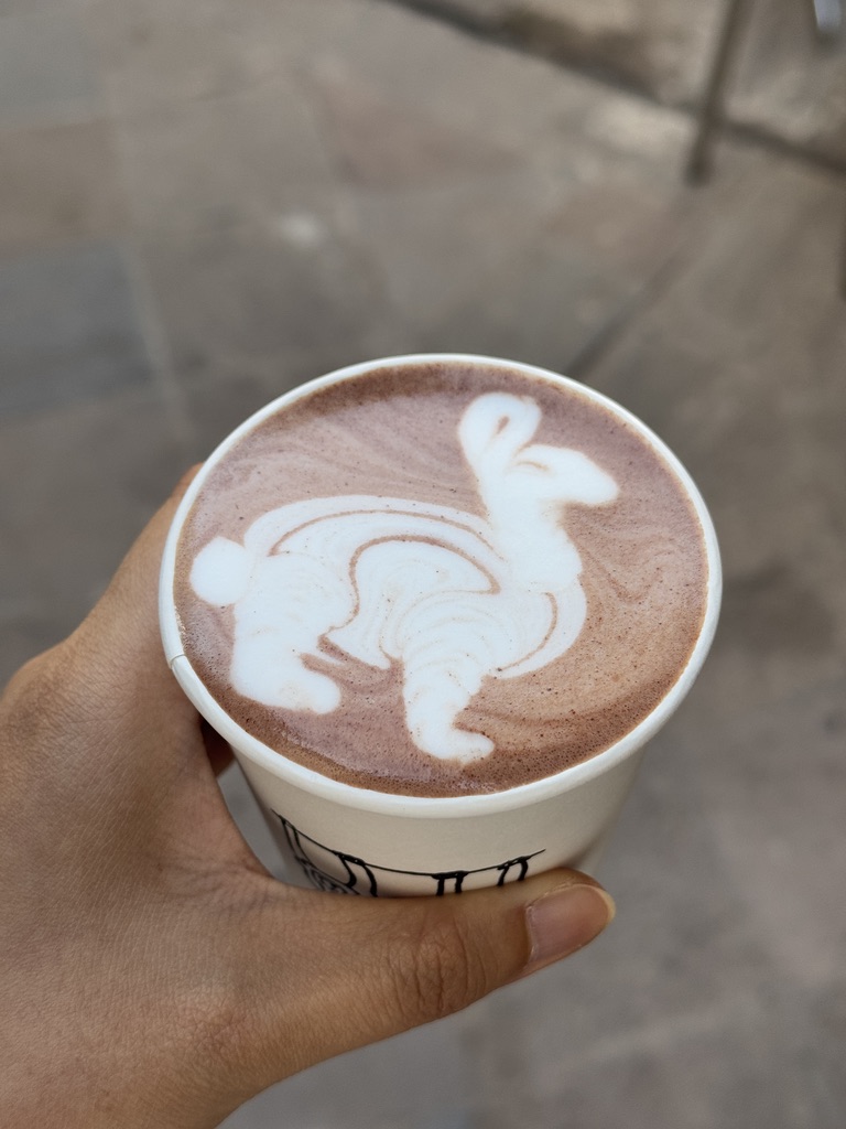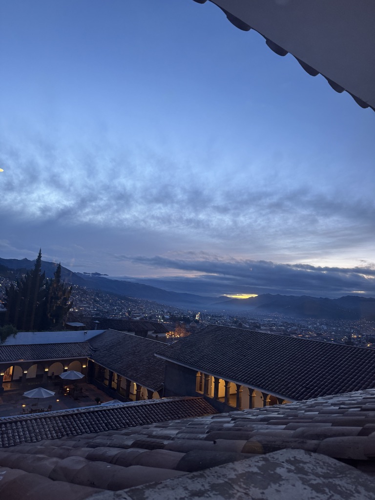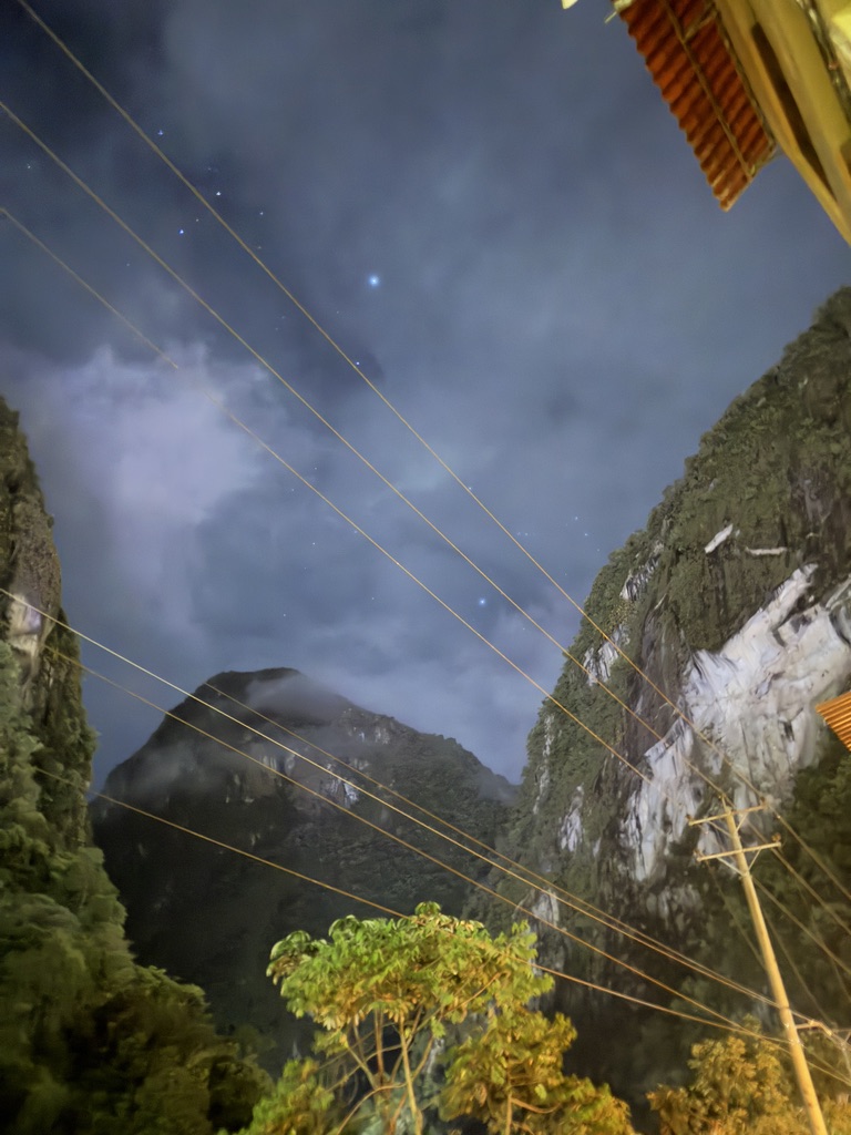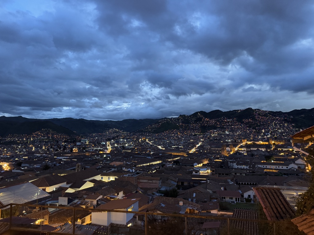 沿着预约上的线路三快速地绕了一圈,拍了几张“人生照片”,我们便决定坐巴士下山了。回去的路就是把来时的路倒着走一遍,先是两小时的火车,又是在工作人员的带领下转乘接驳巴士,坐上末班中巴从欧雁台回库斯科的时候,皎洁的下弦月已经升到半空中了。我把包挂在前排座位上,终于好不容易解放了我的双手负重,刚准备昏沉睡去,转头却看见窗外满眼都是高原上的星星和低低的云。我摘下耳机本能地扭头想要示意坐在后面的Flora,却发现她也刚好望向我,欣喜地指着窗外,用唇语和我说:“星星!” 我便又被治愈了。秘鲁就是这样,最擅长在艰苦的物质条件把你折磨得浑身酸痛的时候,突然给你来一些视觉上的震撼,或是用当地人的真诚和认真治愈。再加上这里依靠旅游业发展,各种报团和餐饮竞争都不免激烈,所以稍微一讲价他们便会亮出底牌恳求你的光临。在咖啡店也是,我说想要我那杯热可可拉花一个羊驼,咖啡师真的仔细地帮我拉了,我便又快乐了。
