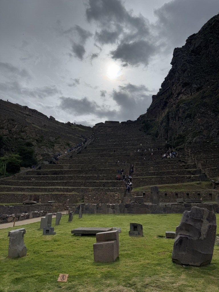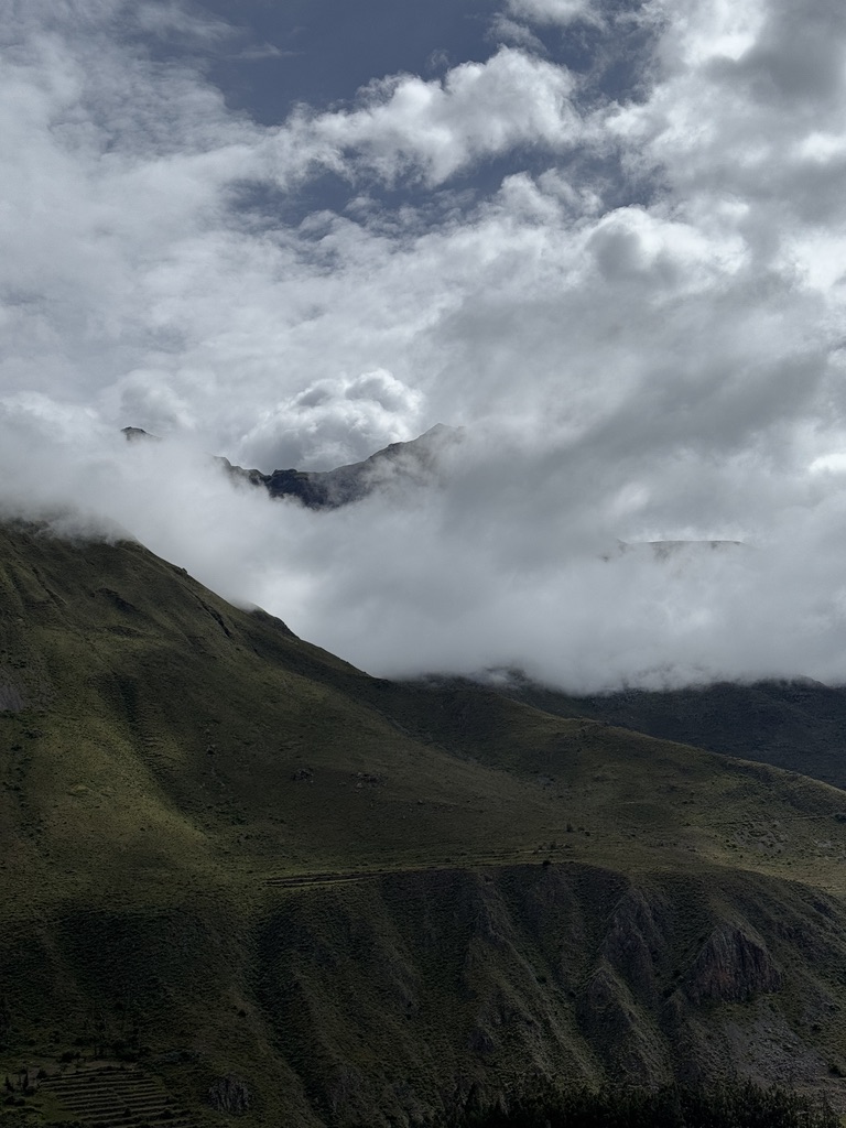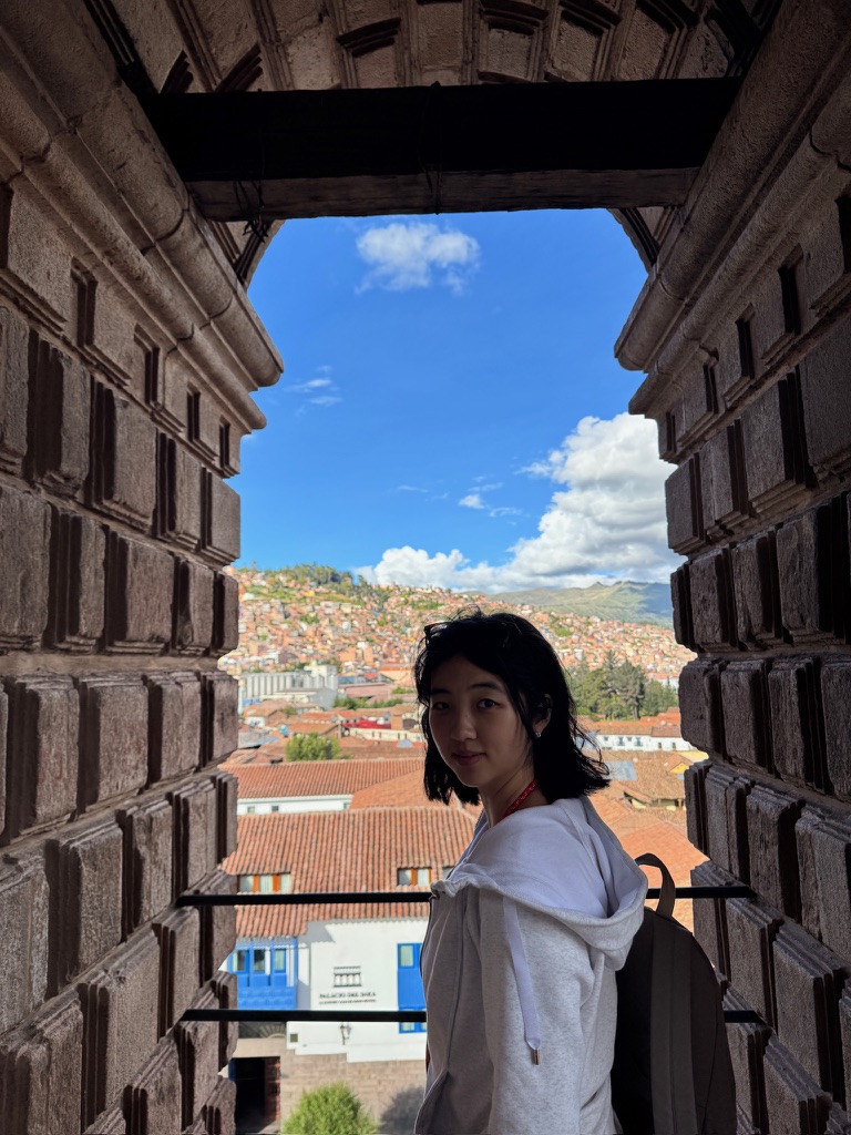 整个团里的其他人基本都是“好学生”模样,就差在听导游讲解的时候拿纸笔记下笔记了。这一点属一位独自出行的利马女孩最为显著。她就像读书的时候最认真学习、上课积极举手回答问题、下了课便拿着门口书店深蓝色结实帆布袋冲向自习室学习的那一类人,戴着最基础款的丝边眼镜、从不早恋、每天都吃食堂热气腾腾的早饭、深受老师喜欢。她在每一个景点都紧跟着导游的步伐,眼神坚定地像是那种能一次考上公务员并且笔面试全部第一的感觉,于是我和朋友送她外号“考公姐”。在两三千米的高海拔下,团里的其他人似乎都跟没事人似的健步如飞,只有我和朋友走几步便喘了,听着导游西班牙语口音的英文讲解更是只能抓得住几个关键词,令人没有紧跟着听的气力和欲望。不过最惨的是掉队还会收获全团人的凝视,眼神好像在说“这两个高个子亚洲人怎么老是掉队”,像是那种上学时犯了错导致全班的体育课改语文的众矢之的……阿弥陀佛,善哉善哉!