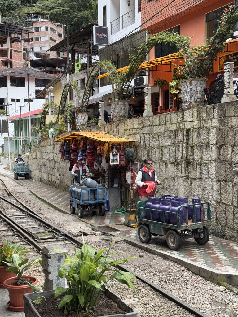热水镇没有汽车,只有官方为了commute上马丘比丘的大巴车,其他运送货物都用这种小车车,好神奇