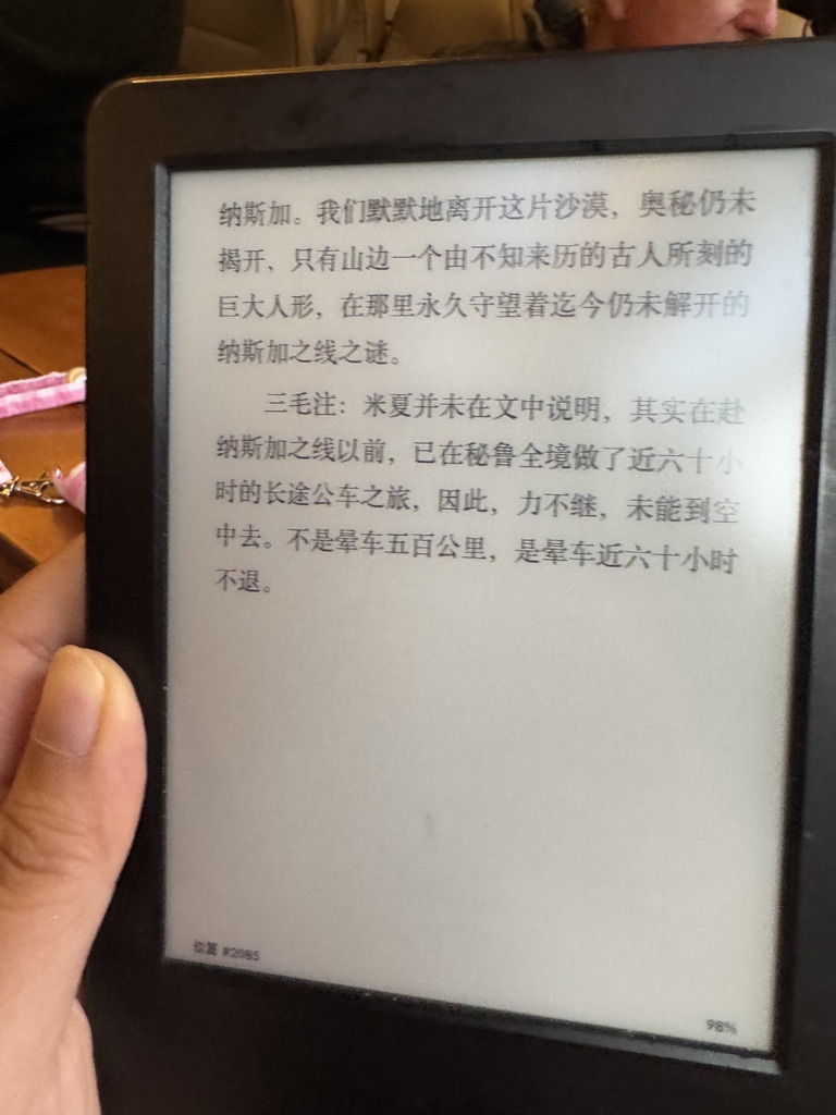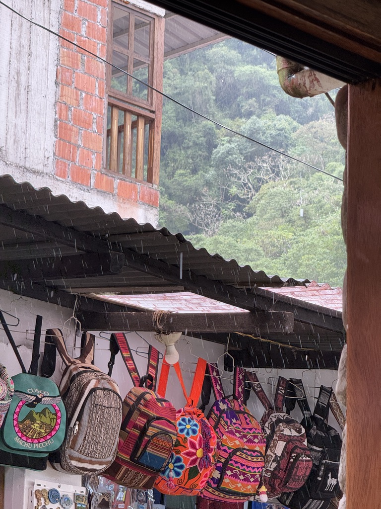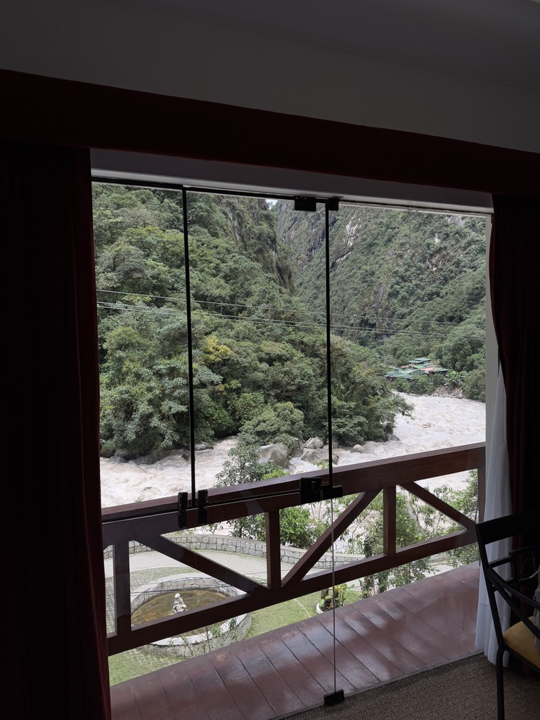 窗外的乌日庞巴河汹涌地奔腾着,在雨季有着像是要冲垮铁路的架势,火车越靠近热水镇,地势越低,从两千八降到两千。沿路堆叠着厚厚的沙袋,大概是为了防止河水蔓延到岸上来。朋友昏沉睡去了,我掏出三毛笔下的秘鲁雨原,在此情此景下再读了一遍,读到她因为铁路被河水冲垮了而回不去库斯科,发现原来在几十年前这里的铁路还是能直通到库斯科的,而今反而更落后了,估计是当年冲垮了之后就再也没人去重修了。还读到米夏的《飞越纳斯加之线》,说她俩自从离开台湾,“飞跃过千山万水,飞跃过成千上万各有悲欢离合的芸芸众生”,我突然克制不住我的泪水。许是因为舟车劳顿的辛苦终于在别人的文字中找到了共鸣和得到了确认,也有可能是因为这沿路遇到的秘鲁人大多都善良真诚,却又认真地生活着,做导游、做司机、做餐厅服务员、做推着小车送货的人、做在火车上为游客表演的人;而赚来的钱可以在家人回国的时候买上一束花。也许我是想太多、自我感动了,但这样的一句话的确是触到我了,尤其是在这硕大的青山间、带着泥沙奔涌而下的河水旁、长长的印加古道边,各色各样的人跨越千山万水慕名而来,而那遗迹从几百年前就在那山巅静静地等待着一波又一波人的到来,承载着一波又一波人的喜怒哀乐与悲欢离合,最后成为这些人的独特回忆,又随着各种交通工具跨越千山万水,散布到这个世界的各个角落里。